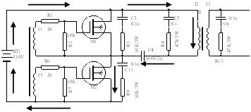 图6 不对称半桥驱动电路电流流向图