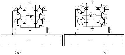 PWM信号产生芯片采用KA3525,它是一个典型的性能优良的开关电源控制芯片。其内部包括误差放大器、比较器、振荡器、触发器、输出逻辑控制电路和输出三极管等环节。KA3525的1和2脚是内部运算放大器的输入端,系统中单片机的D/A转换接口的一个引脚与KA3525的2脚连接,实现KA3525的数字控制与步进调整。11和14脚输出交替的两路控制信号,经驱动电路与功率开关管的门极相连接。本文采用的驱动电路如图6所示。当11脚输出高电平、14脚输出低电平时,N1、P2导通,耦合变压器原边电流流向如图6(a)所示。当14脚输出高电平、11脚输出低电平时,N2、P1导通,耦合变压器原边电流流向如图6(b)所示。图7为驱动电路耦合变压器的输出波形。