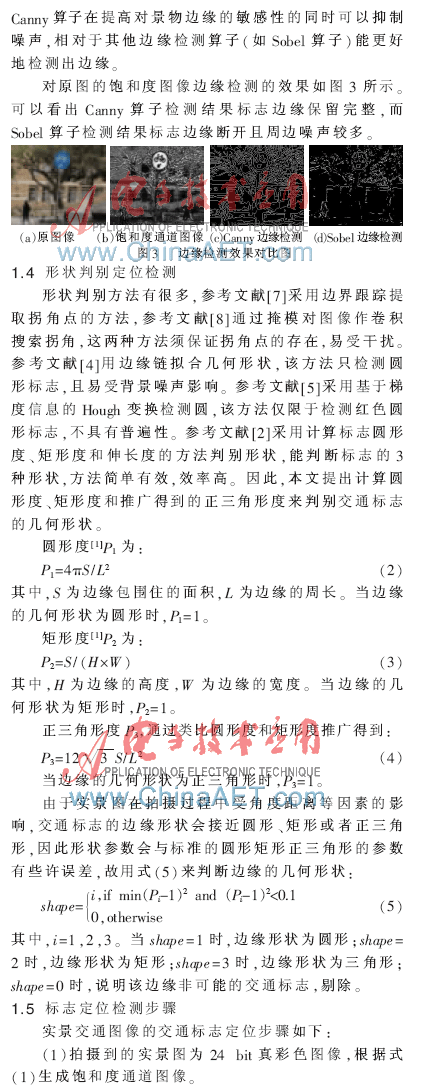 另外,交通标志的定位还有基于边缘的方法[4-5]。相对于颜色定位的方法,基于边缘的方法不需要设定阈值,面对多变的环境显得更为灵活。