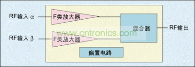 使用异相技术时,分放大器的选择至关重要,F类放大器特别适合工作于此模式。F类放大器不是线性的,但是作为异相放大器系统中的分放大器它工作于固定振幅,其实这一点并不重要。F类放大器在二次谐波和三次谐波采用特殊的终结方法,使放大器晶体管在“开”时电压最小,从而减小开关设备中的功率损耗。该类放大器的峰值输出功率与漏电压平方成正比,因此可用Vdd电源电压来设定平均输出功率,可将Vdd设定为对于任何平均输出功率放大器均运行于可能达到的最大效率。