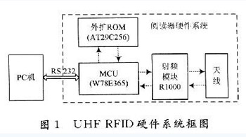 RFID技术是一种非接触的自动识别技术,通过无线射频的方式进行非接触双向数据通信,对目标加以识别并获取相关数据。RFID系统通常主要由电子标签、读写器、天线3部分组成。读写器对电子标签进行操作,并将所获得的电子标签信息反馈给PC机。射频识别技术以其独特的优势,逐渐被广泛应用于生产、物流、交通运输、防伪、跟踪及军事等方面。按工作频段不同,RFID系统可以分为低频、高频、超高频和微波等几类。目前,大多数RFID系统为低频和高频系统,但超高频频段的RFID系统具有操作距离远,通信速度快,成本低,尺寸小等优点,更适合未来物流、供应链领域的应用。尽管目前,RFID超高频技术的发展已比较成熟,也已经有了一些标准,标签的价格也有所下降;但RFID超高频读写器却有变得更大,更复杂和更昂贵的趋势,其消耗能量将更多,制造元件达数百个之多。然而,这里的设计采用高度集成的R1000,可以解决上述问题,既可降低芯片设计中的复杂性和生产成本,又能使制造商制造出体积更小,更有创新性的读写器,从而开拓新的RFID应用领域。