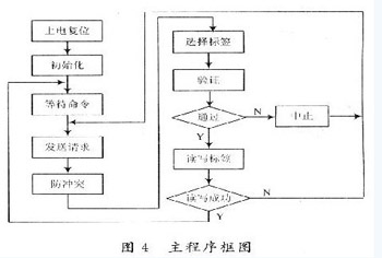 若系统在PC机的监控下工作,则系统与PC机之间是主从通信模式。系统收到Pc机的命令便进入初始化状态,按照主控程序进行相应的工作。处理完毕后,将所得信息送往PC机。主程序流程见图4.