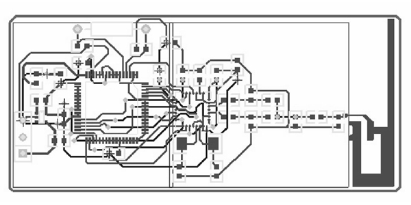 PCB的设计在Prote199SE中进行,先在Protel中绘制原理图,再经过错误检查后,生成网络图,然后再进行布线。此PCB板设计为4层,底层和顶层都走信号线,中间两层分别是地线和电源,底层和顶层所有有接地和接电源的引脚都以最短的具体接地和接到电源,保证了信号完整性及抗电磁干扰性。布线后的电路板如图1所示。