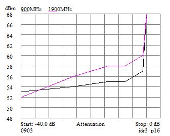 图9:900MHz和1.9GHz时设置的三阶截点相对于衰减值