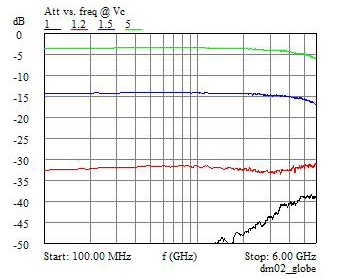 4个二极管配置的VVA在原始设计上控制电压可以由0V到15V变化,由于现代电子技术受到电源电压的限制,因而超过5V的工作要求会限制了客户的使用范围。限制最高Vc在5V会有提高最低衰减由3dB到9.5dB的反作用,原因是降低了进行串接二极管偏置的最大电流值。