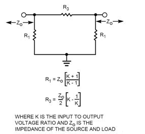 图2:基本PI衰减器电路和设计方程