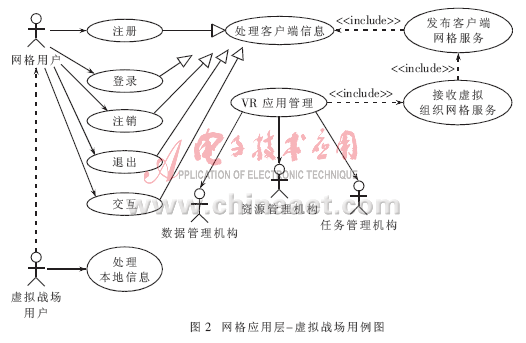 图2即为在网格环境下所要实现的应用系统——虚拟现实战场的UML用例图。具体描述如下: