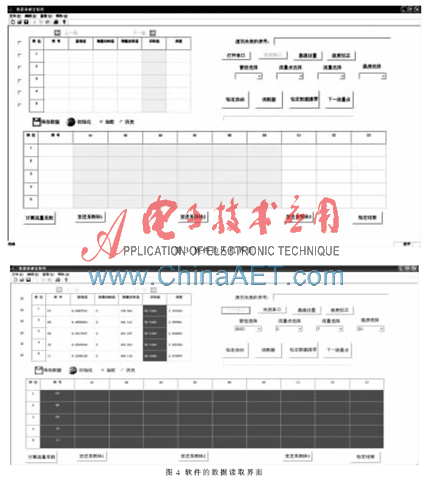 该系数修正软件利用热量表的红外通信功能,通过USB型光电读写头与热量表的主控制器进行串口数据通信。在热量表的流量检定中,配合热量表的流量检定系统来读取热量表的流量基准值和测量结束值,并根据有关公式计算相应的误差和流量修正系数,从而真正实现热量表检定和仪表系数修正工作的一次性完成。不仅使热量表检定工作效率得到显著的提高,而且使热量表的批量检定成为可能。软件的人机界面如图3所示。
