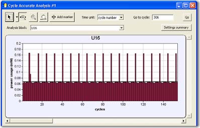 最后,在某些工具中,仿真生成的VCD文件可按时钟周期或时间增量来报告和显示峰值功率。这种功能可帮助用户准确了解什么时间,或哪些时钟周期内功率较高,为设计人员提供另一条应对并可能降低设计功耗的途径(图3)。