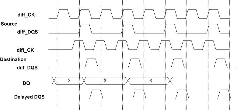 在写调整期间,存储器控制器需要补偿额外的跨越时间偏移(对每个存储器器件,信号延迟是不同的),这是由于fly-by拓扑结构及选通和时钟引入的。如图2所示,源CK和DQS信号到达目的地有延迟。对于存储器模块的每个存储器元件,这种延迟是不同的,必须逐个芯片进行调整,如果芯片有多于一个字节的数据,甚至要根据字节来进行调整。该图说明了一个存储器元件。存储器控制器延迟了DQS,一次一步,直到检测到CK信号从0过渡到到1。这将再次对齐DQS和CK,以便DQ总线上的目标数据可以可靠地被捕获。由于这是由DDR3存储器控制器自动做的,电路板设计人员无须担心实施的细节。设计人员会从额外的裕度中得到好处,这是由DDR3存储器控制器中的写调整的特性所创建的。