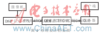 系统分为ARM控制系统、DSP识别系统和后台处理子系统。ARM控制系统选用ARM9为主处理器,负责控制DSP的算法处理,并可将采集到的视频和图像用H.264算法压缩传输到后台服务器;DSP识别系统外接摄像机得到处理对象,内部由DSP最小系统构成,内嵌害虫处理算法实时处理采集到的图像;后台处理子系统是在服务器上安装对应软件,接收ARM+DSP处理系统传来的结果,并加以存储和显示, 进一步传递给用户。图1为系统设计框架图。