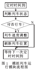 模拟列车运行模块的实现主要包括以下4个部分:(1)定义列车类。除了一些基本列车属性以外,需要定义3个主要的函数分别为:TrainCanMove()、ChangeSpeed()以及Move()。(2)分别实现TrainCanMove()、ChangeSpeed()以及Move()。(3)在OnTimer()中实现图1所示的模拟列车运行模块流程。(4)模块功能的测试和扩展。