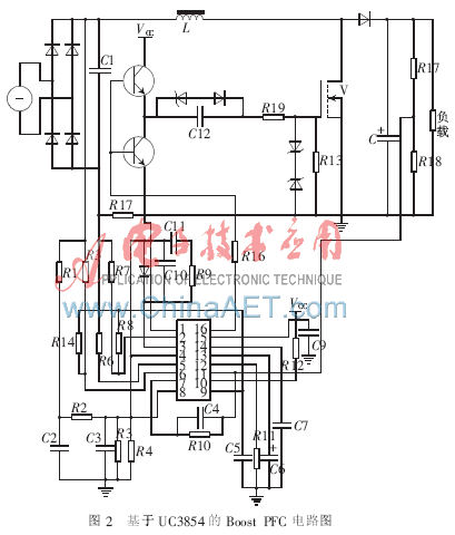 分块来设计以UC3854为核心的有源功率因数校正器电路,如图2所示。