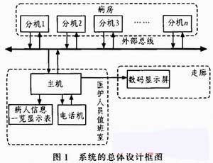 系统的主机和分机都通过单片机进行控制,由于在整个呼叫系统中主机只有一个,是系统的核心模块,通过外部总线可以与分机连接,实现呼叫对讲的功能。主机可以在任何时间接收分机的呼叫,同时数码显示屏和病人信息一览显示表能同步和准确地显示相应的信息,设有一级、二级和三级护理级别,当有多路呼叫信号时,按护理级别和先后拨打顺序循环显示。