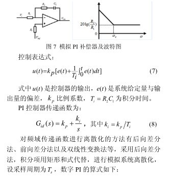 数字补偿器最简单的设计方法是把模拟设计的 PI直接转换为数字控制,但在 s 域中零阶保持器和采样器设计比较难,因此常常忽略控制回路中所有的零阶保持器和采样器,然后在 s 域内按照连续控制系统进行设计,最终将模拟补偿器转换为数字补偿器。