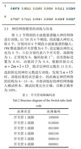 本文通过对 PWM 整流器的输出电流进行小波分解, 对比分析发现, PWM 整流器正常时和故障时小波分解系数相差明显,因此对正常情况和各种故障情况的电流进行分解并计算其小波能量谱,发现不同的故障各频段的能量谱差别明显,为了便于后面的分析与比较,将其归一化后再将其输入训练好的神经网络进行故障的识别与诊断9], 仿真的结果表明该算法的诊断正确率 100%,是一种准确、高效的诊断算法,对工程上实现 PWM 整流器故障的快速、准确诊断与容错控制提供了一定的指导作用[10]。
