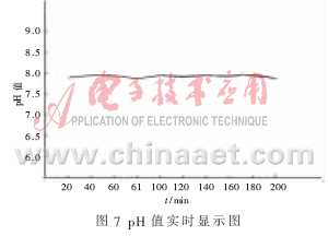 图7为pH值显示图,可以实时显示当前的pH的情况。环保监控人员不仅可以实时看到数据,而且已经可以把数据图像化处理,显得更加直观。