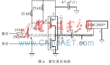 将在微处理器控制下生成的3~4 A、40 ns的置位/复位脉冲施加到HMC2003的SR+管脚上,如图4所示。