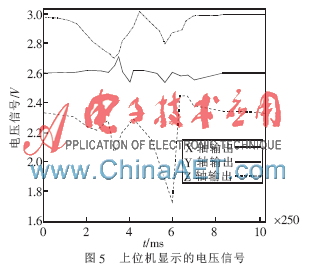 从图5可以发现,在出租车开始行使到经过检测节点,再到离开检测节点的过程中,X、Y、X三轴的电压均发生波动,因此,该无线车辆检测器可以判断车辆的有无,进而判断车流量。