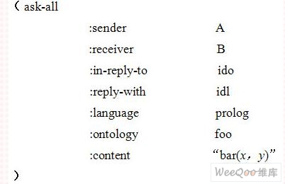 对于Agent中的任何一种协作,方法和语言是不可或缺的。现在通讯语言有了很大的发展。这些语言定义了语法和语义用于Agent间的通讯。KQML是一种用于软件间交换信息和知识的语言和协议,为消息的表达和处理提供了标准的格式。其主要优点有: ⑴具有灵活的结构和良好的可扩充性;⑵独立于网络传输机制;⑶独立于内容层表达语言;⑷能够满足间信息传递的基本要求。