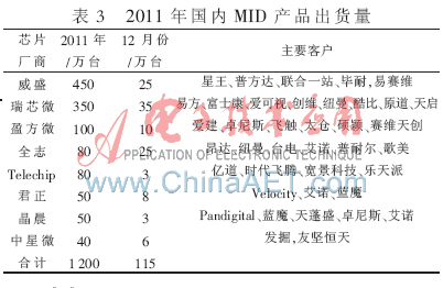 MID(Mobile Internet Device)是Intel公司在2008年IDF大会上推出的一种新概念迷你笔记本电脑。目前MID主要涵盖智能手机和平板等移动互联网接入设备。随着人们对智能化生活要求的不断提高,近年来,移动互联网设备MID得到了飞速发展。2011年智能手机全球出货量为4.88亿部,同比增长63%,已经超过了个人电脑的全年销售量。同时,另一主要MID设备平板电脑也得到井喷式发展,2011年全年出货量约为6 000万部,同比增长274%。其中,70%是苹果公司的ipad,仅2011年第四季度,ipad销量为1 540万台,超过全球最大PC公司惠普同期1 510万的个人电脑销量。