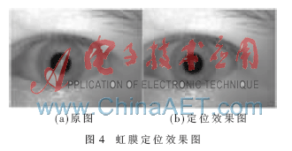 实验所用的虹膜图像全部由实验室搭建的采集设备拍摄,目前拍摄了20人,每人左右眼在不同的时期各拍摄6张,共计240张虹膜照片,照片为8 bit灰度图像,768×576像素大小。虹膜照片效果如图4(a)所示。