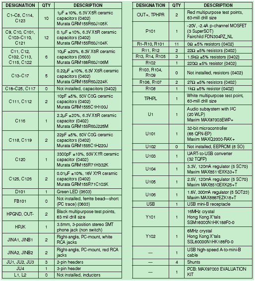 MAX97003EVKIT材料清单: