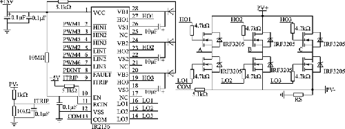 图3 驱动芯片IR2136及MOSFET管外围电路设计