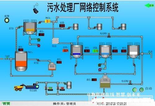 本项目针对分布范围广、布局复杂的污水处理控制系统提出了一种较好的方法?应用三菱Q系列PLC等设备及GPRS无线通讯技术,构建了基于GPRS的物联网终端污水处理网络控制系统,实现了无线远程多级监控?该项目在实际应用中能够运行正常,性能稳定、可靠,监控界面友好直观,操作简便?这种无线传感器网络的应用,使自动控制系统更加具有实用性和灵活性?这也正是一种物联网概念的体现与运用?