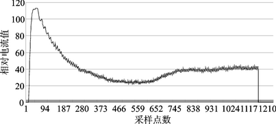 最后通过LIN总线获得车窗上升过程中电枢电流的数据,并转换成图形,如图8所示。其中电流值为经过A/D转换后的结果。