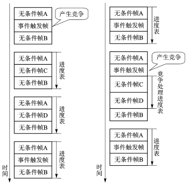 图1 LIN2.0的事件触发帧竞争处理机制 图2 LIN2.1的事件触发帧竞争处理机制