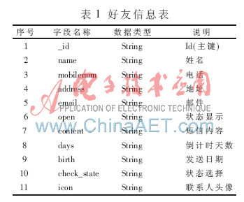 随着软件应用程序逐渐模块化,嵌入式数据库可直接在应用程序进程中运行,提供了零配置运行模式,并且资源占用非常少。Android系统支持多种数据存储技术,其中有简单信息存储方式SharedPreferences[4],也有内存占用少、效率高。支持 SQL 语言的轻量级嵌入式数据库引擎——SQLite。在进行开发设计时,结合功能需求和软件性能,本系统采用了SharedPreferences进行简单短信信息存储,及SQLite数据库存储数据量较大的好友信息。