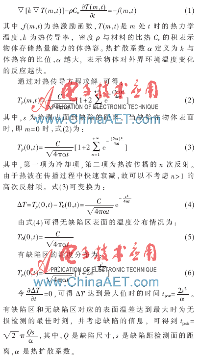 红外热成像无损检测技术是一种新型数字化无损检测技术,与超声法、射线法等传统无损检测方法相比,具有单次检测面积大、速度快、非接触、安全可靠及适于现场检测等优点[1-2]。随着石墨电极在工业中应用日益广泛,其在生产过程中易出现分层、裂纹和孔洞等缺陷的问题日益突出,而对此类缺陷的检测,红外无损检测被公认为是最有效的解决方法[3-4]。