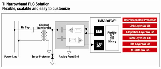 TI 的PLC方案可以用同一套相同的硬件平台支持不同PLC OFDM载波标准,例如法国G3标准,西班牙的Prime标准以及IEEE的P1901.2标准。因此无论您的最终客户用的是什么标准,TI的硬件平台是统一的。由于软件的灵活性,TI还可以定制适合不同应用和不同环境的标准,例如Flex OFDM和低成本的基于F28035平台的PLC Lite等。
