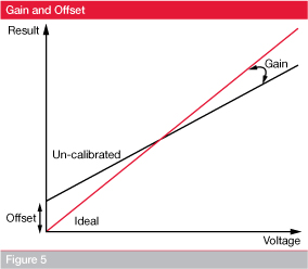 一旦偏移值已知,ADC的增益能够从满量程误差中找到。这是在最大量程的理想输出值(如12-比特ADC中的0xFFF)与偏移值为零时实际输出值之间的差值。