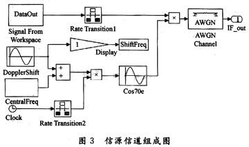 考虑到加解密迭代基本不牵涉误码率问题,当以提高系统误码率的思想进行算法仿真时,去掉加解密环节;考虑到射频的影响主要在于多普勒效应和射频器件的热噪声,故将其影响直接折算到中频上,这样可有效避免射频带来的高采样率问题。