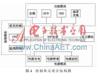 控制单元的硬件系统由前端模块、DSP处理模块、显示模块、系统功能模块和电源模块组成,如图4所示。