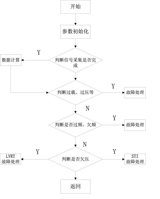 软件程序主要包括主程序、A/D信号采集程序、TPM测频程序、电参量计算程序、保护处理程序、各种通讯协议处理程序等,由于内容较多,现给出部分程序流程。