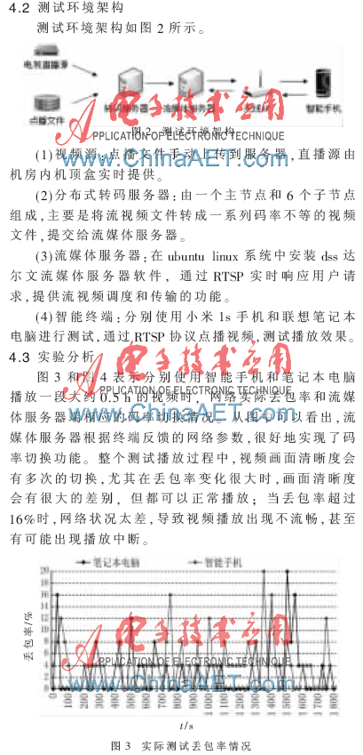 本方案通过分布式实时转码系统,保证了点播和直播流视频文件的实时提供,实现了从50 kb/s~300 kb/s的6个递增的码率等级。