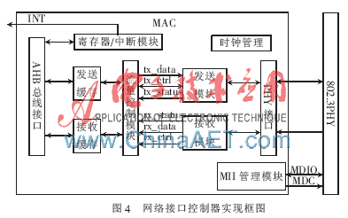 (7)MII管理模块。完成对PHY工作模式的监控和设置。