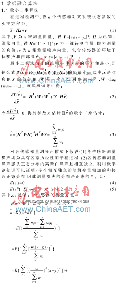 关键词:数据融合;多传感器;均方误差;最小二乘