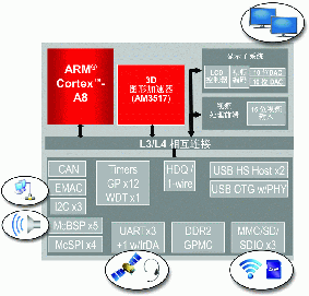 为了取得市场份额,TI的Stellaris MCU有一些独特之处:(1)通信接口非常完善,比如10/100以太网MAC+PHY、CAN总线及USB;(2)具有单周期闪存与高达50 MHz SRAM存储的优化存储器性能。而Sitara MPU的优势在于:(1)首批面向工业领域推出的Cortex-A8 器件;(2)不足1 W的功耗实现1 000 Dhrystone MIPS性能;(3)集成图形与高分辨率显示,实现直观易用的用户界面;(4)原生支持大屏幕显示;(5)高度的系统集成可显著降低电路板的复杂性。