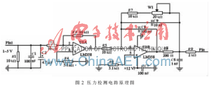 系统中压力的检测通过E8CC压力传感器配合相应的放大调整电路实现。E8CC采用