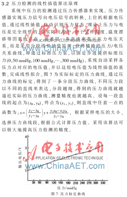 本文提出的基于STC12C5A单片机和E8CC气体压力传感器的电子血压计综合性能评价系统,具有静态压力检定、加压特性曲线检定、功耗检定等多种功能,能够实现对电子血压计的综合性能评价。本文的创新点在于,充分结合硬件、软件的优势,引入PI控制理论和线性插值理论,设计并实现了一种多功能、高精度的电子血压计性能评价系统。目前,该系统已成功应用于工业现场血压计的特性检查,客户反映良好。
