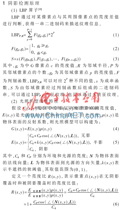 关键词: 线性特性; LBP纹理; 运动车辆; 阴影检测