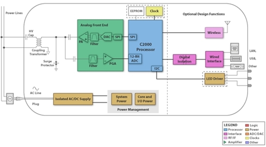 这意味着对电力线调制解调器进行工程设计和验证是一项极为困难的设计团队挑战。它需要各种工程设计技能,而专业技术所涉及的学科则包括 AC 线路接口(隔离、信号和安全问题)、必须解决严重噪声问题的模拟前端、电源隔离与电源管理以及信号处理知识等,以便能够编码适当的调制方案(FSK 和 OFDM 为常见选项),然后从各种噪声中提取信号并在接收器上解调数据。