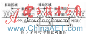 (2)如果时钟的初始位置在S1处,则增加相位偏移至S2处,即从下一个抖动区开始,同步骤(1)分别增加相位偏移至T1、T2记录,则(T2-T1)/2为最佳的采样时刻。