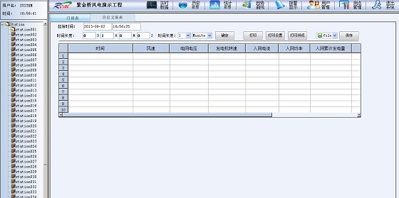 利用历史报表,能够以多种方式显示环境风速、电网电压、发电机转速、入网功率、入网累计发电量等参数的历史记录,方便进行对比、归档、分析、统计数据处理功能。