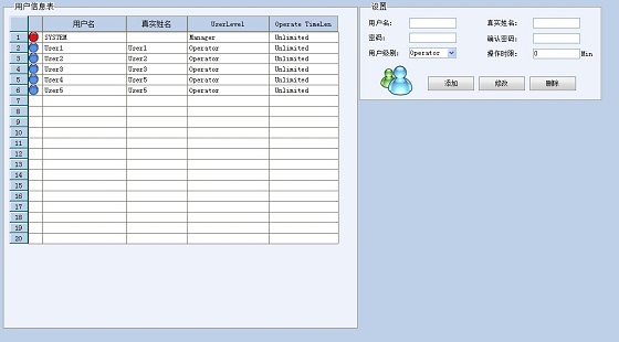 安全管理支持用户分组,用户继承所在组的全部权限,且可以定义拥有自己的私有权限。对窗口、各种点、各种操作等都提供了完整的安全保护机制,只有授权用户才可以操作。