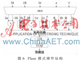 为了简化Plane模式的硬件结构,假设A=ia+(-3)×ib+(-3)×ic+16,可以分析得出PredMatrix[x,y]=Clip1((A+x×ib+y×ic)>>5),其中x×ib和y×ic运算可以转化ib和ic的移位加和运算。